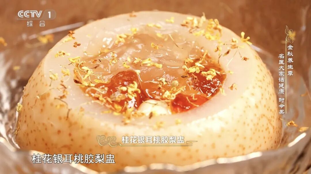 3.将梨盅上锅蒸30分钟,出锅后撒上少量桂花。