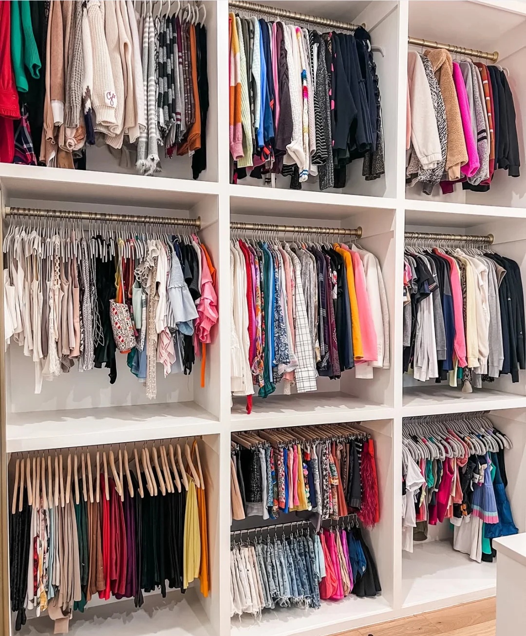 其实这个家务根柢就莫得必要去作念,唯有把衣柜改周密部都是挂衣区就不错,如期断舍离那几许久不穿的衣着将。