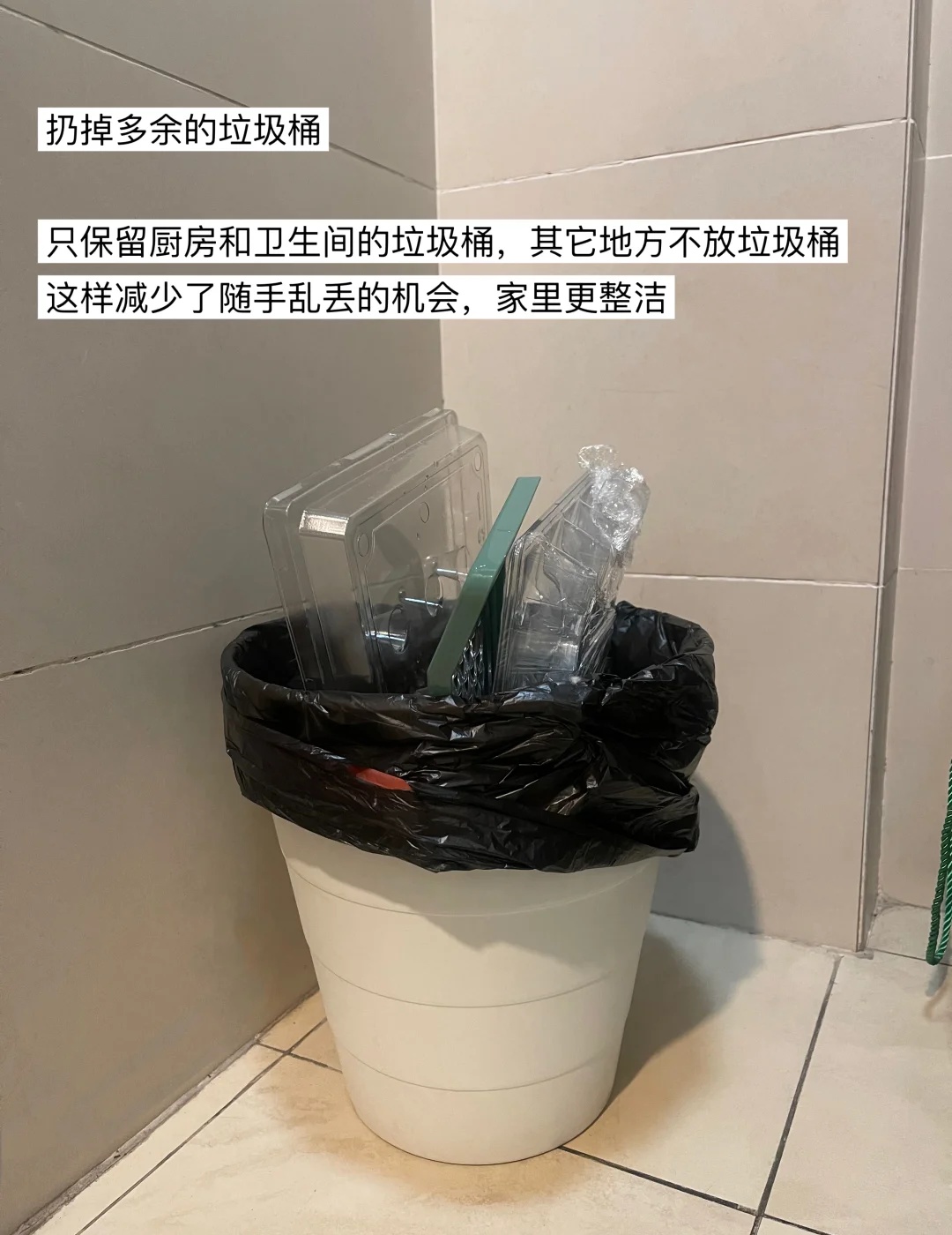 原来觉得在每个房间都放一个垃圾桶会陋劣咱们扔垃圾,可其后才发现家里的垃圾桶越多,咱们要收拾的垃圾也就越多。
