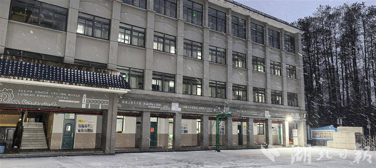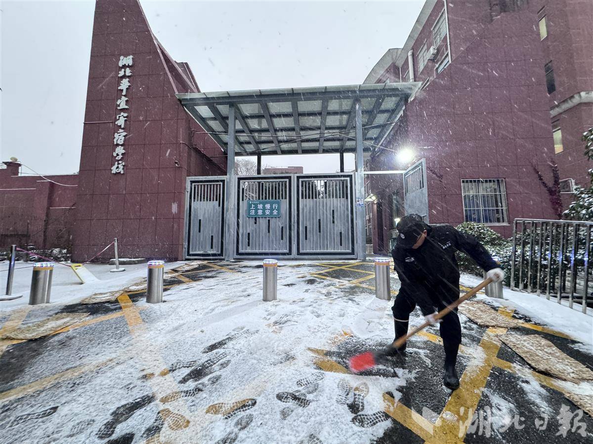 天还未亮,校园里已是一派费劲。凌晨五点,湖北华宜投寄学校的安保和环卫东说念主员便运转清扫校门及左近积雪。七点不到,校指引已守候在校门口,含笑着迎接陆续返校的小学生。